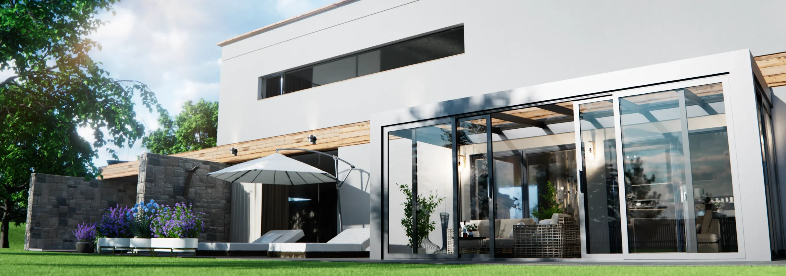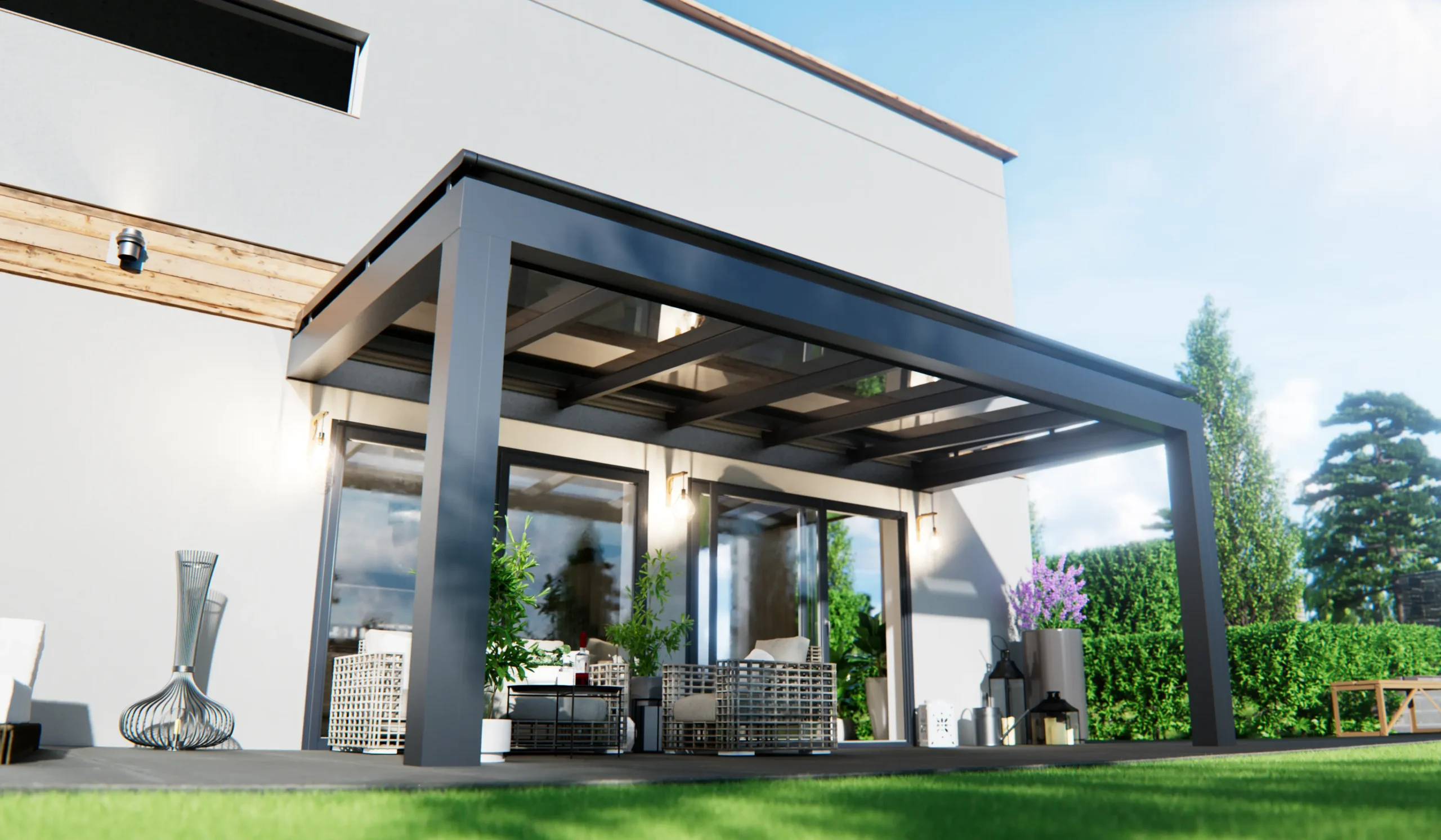 Eine Veranda und ein Wintergarten sehen sich sehr ähnlich. Eine Veranda ist in der Regel eine Überdachung ohne Seitenwände, die an der Front, der Seite oder der Rückseite eines Hauses installiert werden kann. Ein Wintergarten enthält neben einem Dach auch Wände und besteht oft aus Glas in Kombination mit einem Metall- oder Aluminiumrahmen. Für Veranden werden oft andere Materialien wie Holz und Kunststoff verwendet. Eine Veranda bietet hauptsächlich Schutz vor Sonne, Regen und anderen Wettereinflüssen, während ein Wintergarten oft als zusätzlicher Wohnbereich dient. Wenn Sie Ihre Veranda mit Glasschiebewänden ausstatten, können Sie diese ebenfalls in einen zusätzlichen Wohnbereich verwandeln.